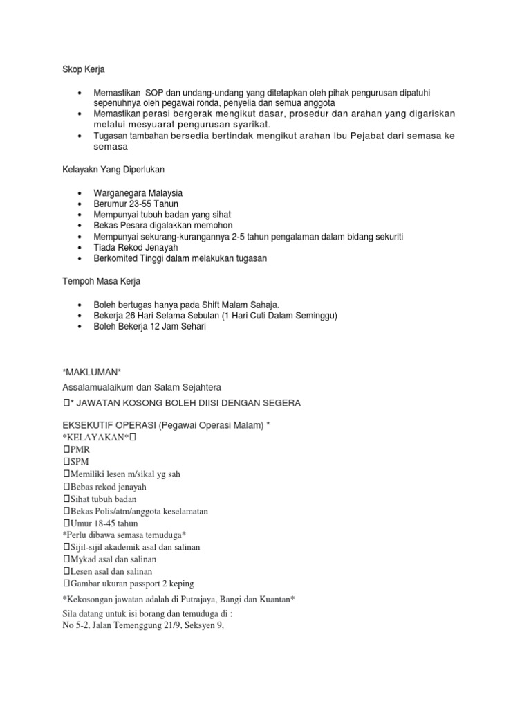 Kami sedang mencari individu yg berdaya maju. Guru Mata Pelajaran 13. Contoh Skop Perkhidmatan Kawalan Keselamatan Lampiran 24.